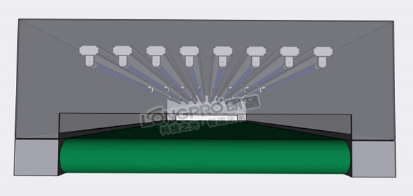 朗普科技(LONGPRO)根據(jù)紫外殺菌劑量(參考GB15981標準)要求,選用朗普高強度紫外線殺菌燈HL-840(單燈150W,1m紫外強度:≥580μW/cm2)通過計算所需數(shù)量為8盞,紫外劑量≥ 20,000μW.s/cm2。紫外線燈安裝在輸送線內(nèi)部上方4盞,下方4盞(采用滾軸傳送,便于紫外線有效照射信件底部), 快遞信件在輸送線上勻速通過,紫外線照射時間≥5s,從而快速有效殺菌。
